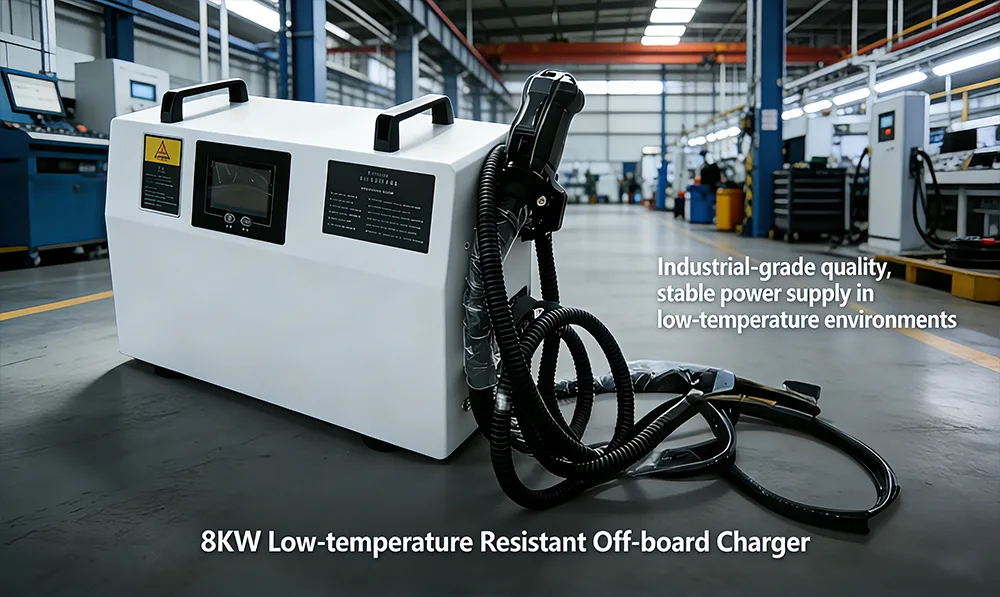 เครื่องชาร์จนอกบอร์ดทนอุณหภูมิต่ำขนาด 8KW นี้ใช้ชิปที่ปรับอุณหภูมิต่ำและโครงสร้างฉนวนกันความร้อนและการกระจายความร้อนที่มีประสิทธิภาพ สามารถทำงานได้อย่างเสถียรในช่วงอุณหภูมิกว้างตั้งแต่ -40°C ถึง 50°C ในสถานการณ์ต่างๆ เช่น คลังสินค้ากลางแจ้งในฤดูหนาวทางตอนเหนือและท่าเรือในเขตหนาว โดยมีอัตราความสำเร็จในการเริ่มต้นระบบ 100%